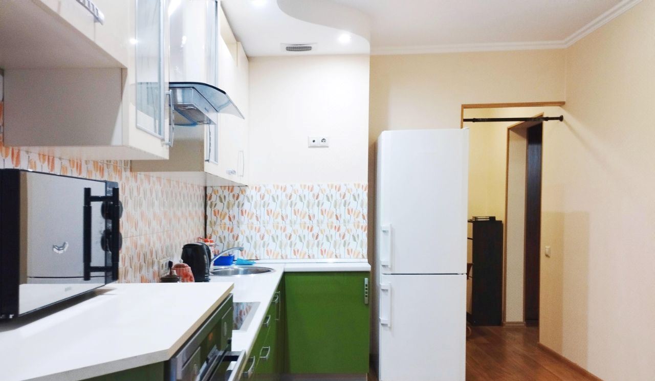 Продается 1-комнатная квартира с ремонтом!!! Проспект Ракетостроителей, д. 9, корп. 3, на 5 этаже 19 этажного панельного дома. Общая площадь 46,6 кв. м, жилая 22 кв. м, кухня 11 кв. м, с/у совмещенный, застекленная лоджия, гардеробная. Установлен кондиционер и бойлер.