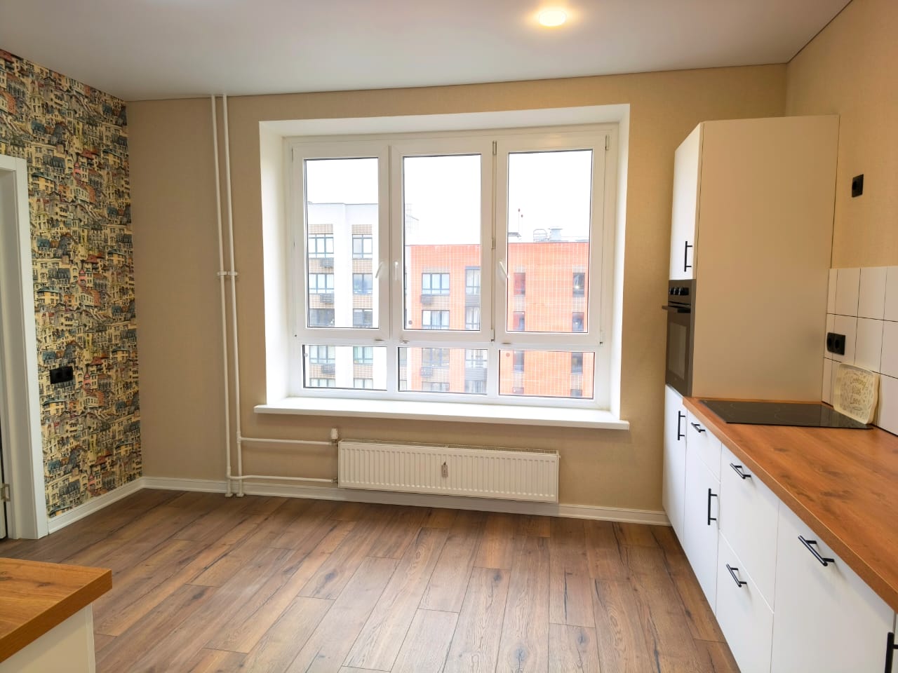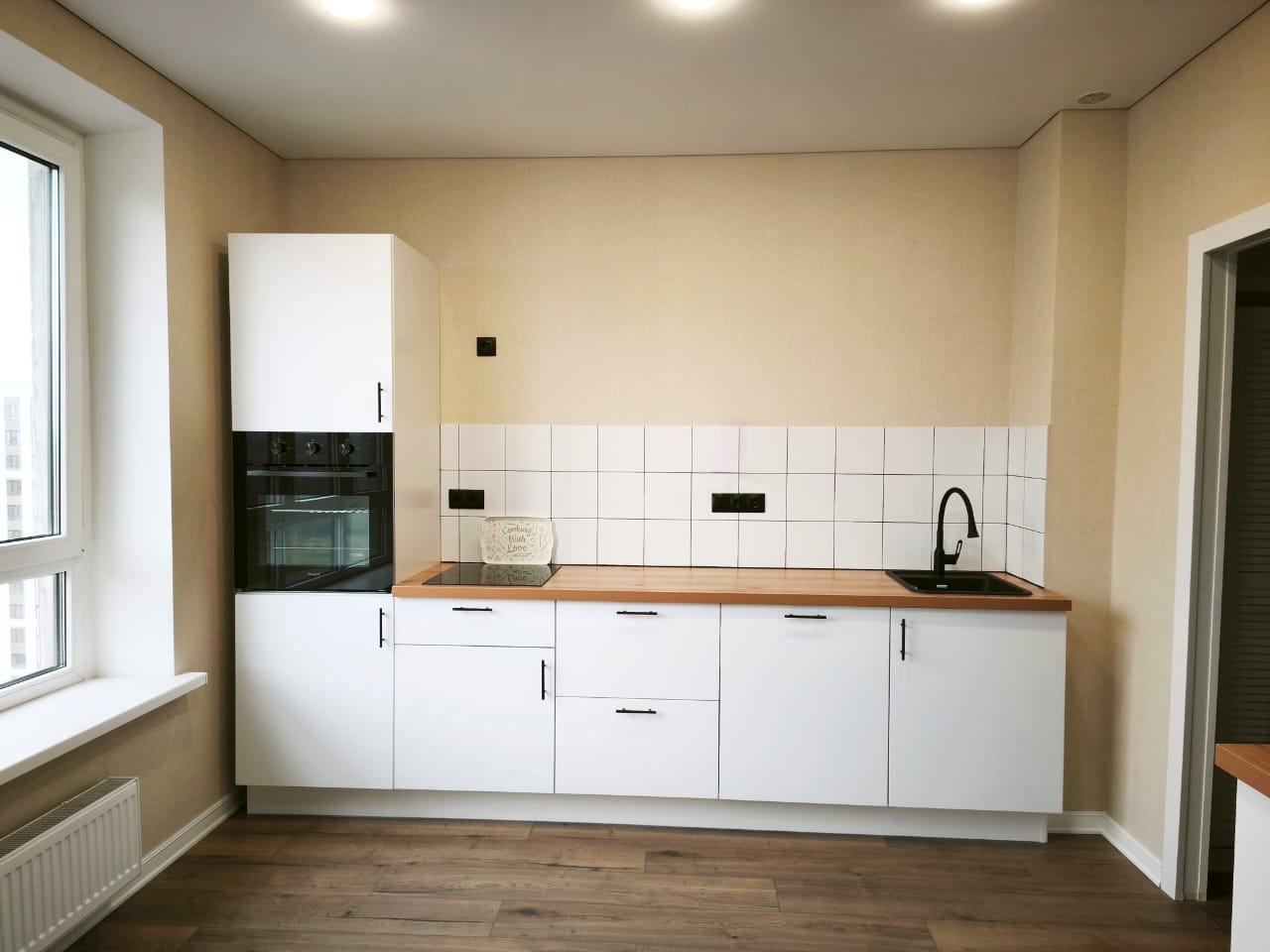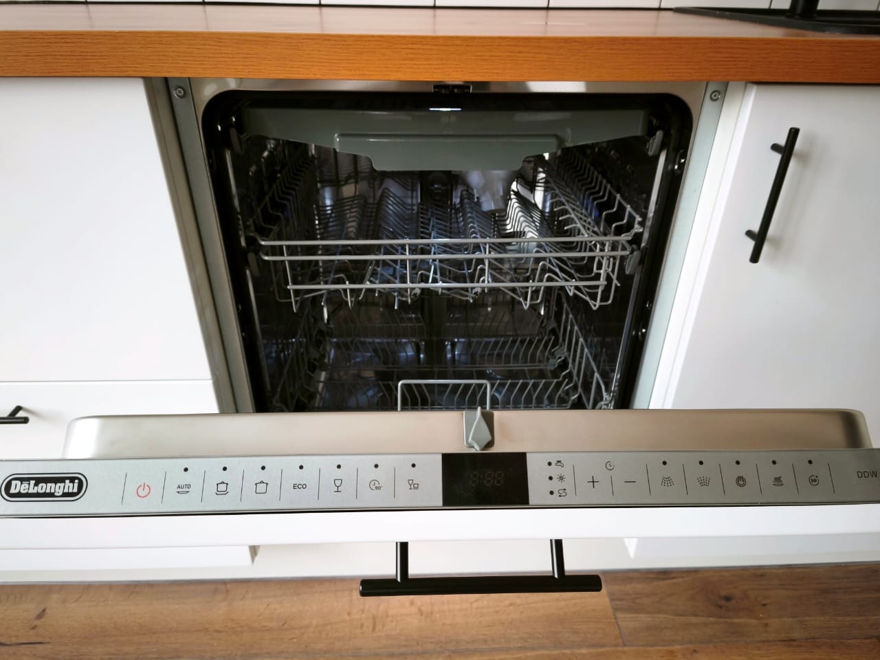 КУХНЯ укомплектована всем необходимым: кухонный гарнитур с духовым шкафом и посудомоечной машиной DELONGHI, система защиты от протечек «Нептун».