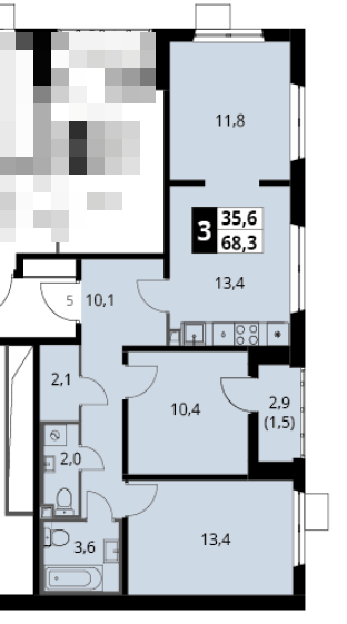 Уважаемые покупатели, Вашему вниманию предлагается великолепная меблированная 3-комнатная квартира с ремонтом 2026 года в ЖК класса Комфорт Плюс «1-й Ленинградский». Общая площадь 68,3 кв. м с учетом лоджии, 66,8 кв. м без учета лоджии, жилая 35,6 (13,4/11,8/10,4) кв. м, кухня 13,4 кв. м. Московская прописка, чистый воздух и московские льготы. Ремонт делали для себя, на материалах не экономили!